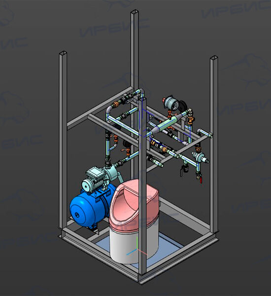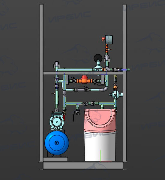 Индивидуальный тепловой пункт узла водоподготовки ИТП УВ-001 предназначен для подготовки воды, используемой в качестве теплоносителя в системах отопления. Выпускается на базе автоматической установки умягчения «Аквафлоу SR 12,5-F79M».